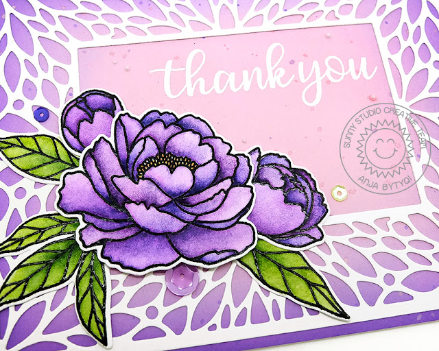 today I'm back with a floral Thank You card using the Sunny Studio Stamps Blooming Frame Die along with the beautiful Pink Peonies Stamps.
